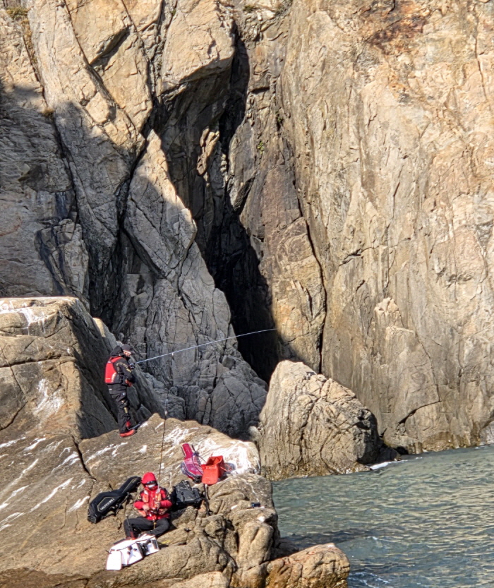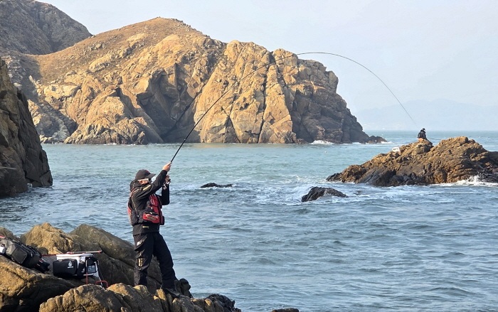 둘째 날은 밤새 주의보가 발효돼 아침 9시경 늦은 출조에 나섰다. 강한 북서풍 탓에 서쪽으로는 못 가고 동쪽 포인트에 내려야 했다. 주로 다라섬~농여 일대였다. 그러나 이날은 강풍도 문제였지만 포인트 경쟁도 치열했다. 밤새 사선 4척이 들어왔고 출조한 낚시인이 120명이나 됐기 때문이었다.