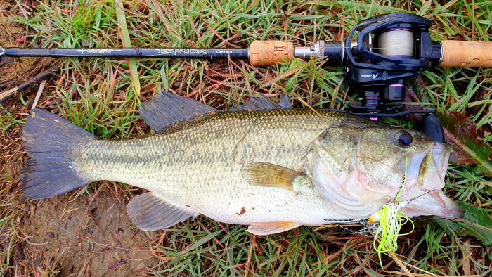 필자가 낚은 배스와 바낙스 에스파다 로드.