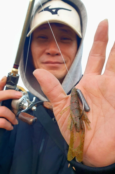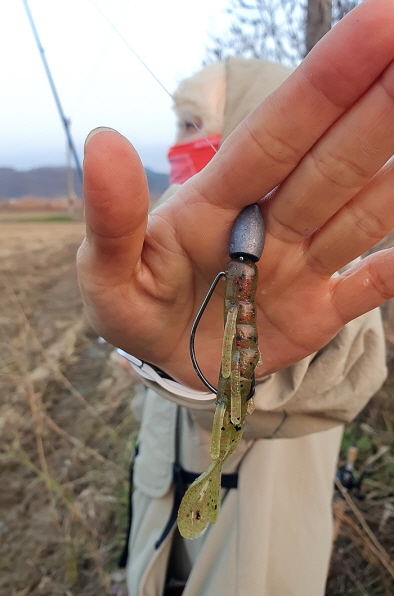 무장리에 도착해서 이승혁, 강민경 부부가 준비해 온 꼬치어묵을 끓였다. 어묵이 준비될 동안 약 15분의 시간이 필요했다. 이승혁 씨는 “혼자 끓일 테니 나머지 일행들은 낚시를 하라”고 했다. 조금이라도 시간을 아껴 써야 할 상황이었기 때문이었다. 나는 아까부터 4인치 컷테일웜을 리깅한 프리리그로 연안 커버 속으로 피칭을 반복하고 있었는데, 어묵이 준비될 동안 그것을 반복했다. 그러다 물속에 자리 잡은 족제비싸리나무 가지 속으로 채비를 넣었는데 폴링에 배스가 반응했다. 훅셋! 물이 맑았기에 배스가 보였는데 45cm는 되어 보이는 개체였다! 바로 발앞에서 받은 입질이었기에 빠르게 제압해서 연안으로 올리는데 연안에 배스가 닿자마자 훅이 빠져버렸다. 그렇게 녀석을 놓쳤다. 훅을 확인하니 끝이 구부러져 있었다. 평소와 다르게 가는 훅을 써야 훅셋이 잘 되기 때문에 훅을 바꿔서 세팅한 것이었는데, 그게 문제였다. 배스의 입안을 관통하지 못하고 구부러지는 훅이라니 참 난감했다.
