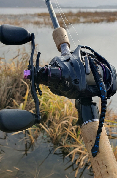 배스의 입질을 계속 유도한 컷테일웜 4인치 프리리그.