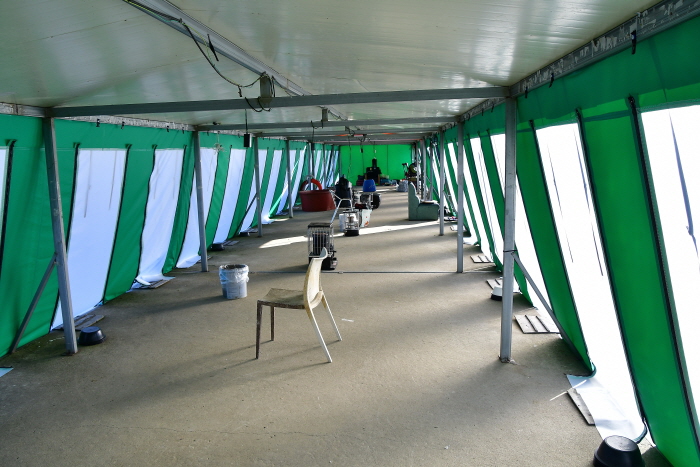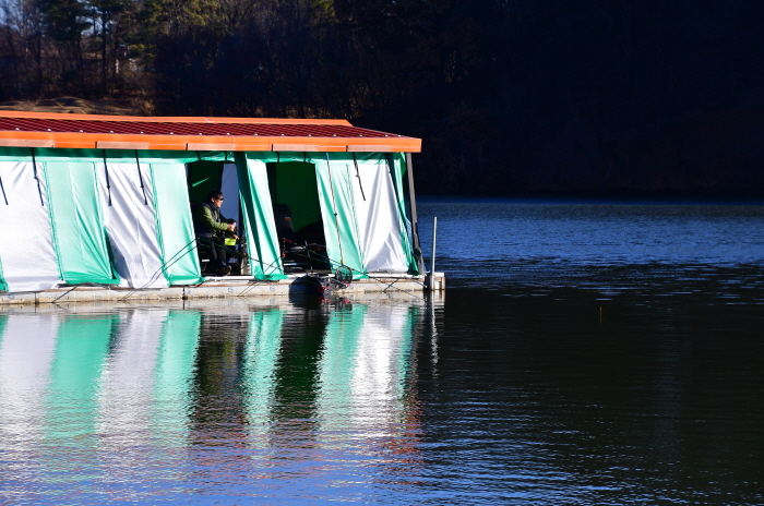 필자는 낚시공간과 취침공간이 분리된 3인용 방갈로에서 낚시했는데, 혼자이다 보니 빈자리는 가림막으로 문을 막아 찬바람 유입을 최소화했다. 낚시 자리도 절반 정도는 상단을 막아 따뜻한 공기의 유출을 막았다. 난로를 펴고 한창 붕어를 낚을 때 나도 모르게 땀이 날 정도였다. 한겨울에는 물대포를 가동하지만 필자가 출조한 날 이후로 얼음이 잡혔기에 촬영 당시는 물대포를 가동하지는 않았다.