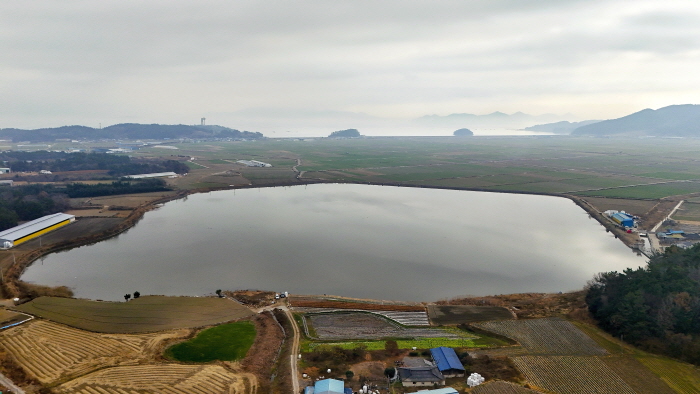 드론으로 바라본 어은지. 인근 포항지와 관흥지의 유명세에 가린 곳으로 붕어자원이 무궁무진하다.