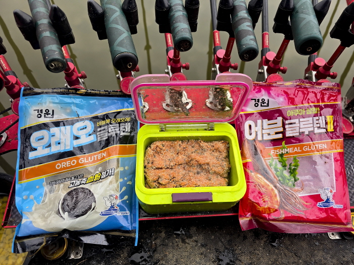 취재 당일 어은지의 최고의 미끼였던 글루텐. 경원사의 오래오글루텐과 어분글루텐을 섞어 사용했다.