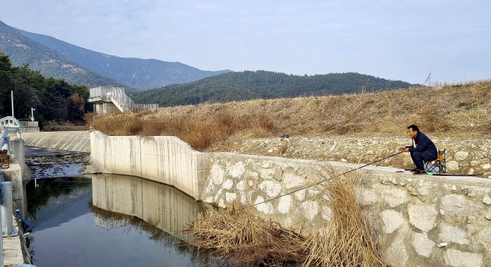 어은지 상류에서 아침 낚시를 즐기고 있는 낚시인. 유독 상류에서는 낮에 입질이 잦았다.