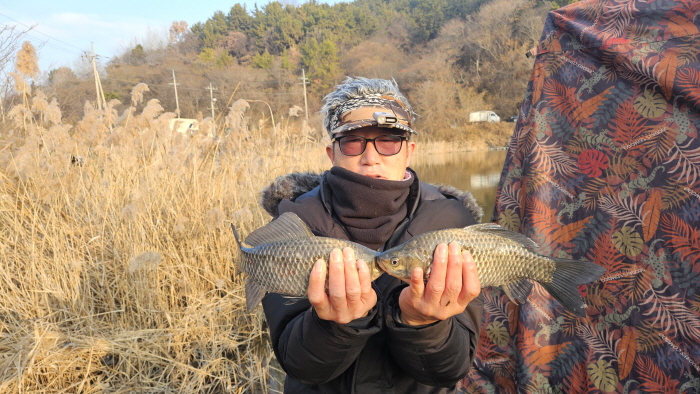 동 튼 이후에는 전 포인트에서 입질이 없어 아쉬웠다. 나는 턱걸이 월척 포함 9치 이상 9마리를 낚았는데 한겨울 조과로는 만족스러웠다. 동행한 낚시인들의 조과를 촬영하고 내자리로 돌아오자 6.0칸과 6.5칸 대의 찌가 움직인 것이 보였다. 아침 입질이 전혀 없는 것은 아닌 것 같았다.