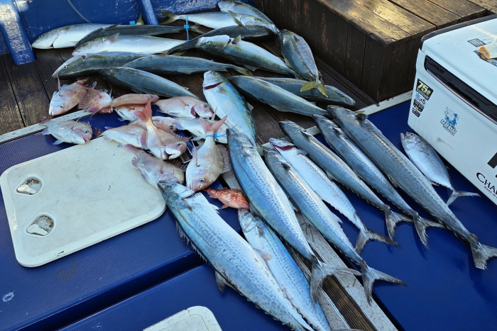 철수해서 조과를 확인하니 대물은 없지만 다양한 어종이 낚인 것을 확인했다. 아쉬운 것이 있다면 평소에 잘 낚이는 대삼치가 모습을 보이지 않았다는 것. 그리고 비가 오지 않았다면 전날보다 오른 수온 덕분에 좋은 조과를 거둘 수 있었겠지만 기상청이 원망스러울 뿐이었다.