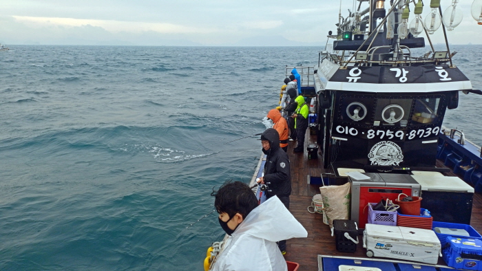 비는 하염없이 내렸고 선장은 또 다른 포인트를 찾아 외섬을 몇 바퀴나 돌고 또 돌았지만 별 소득이 없었다. 결국 외섬을 벗어나 나무섬으로 이동해 방어, 부시리 지깅으로 종목을 전환했다.