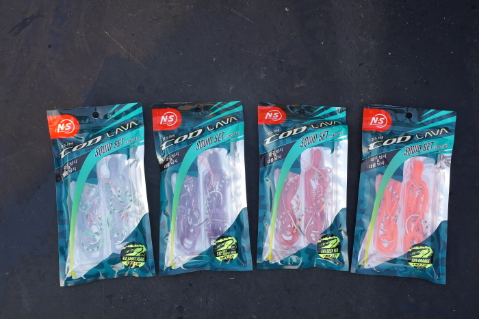 엔에스에서 이번 겨울에 출시한 코드라바 스퀴드 세트. 바늘과 웜 일체형 채비이다.