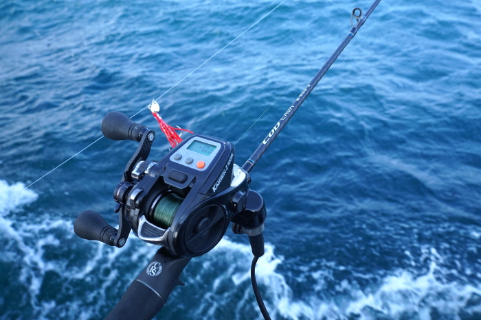 취재일 사용한 장비. 작고 가벼워 대구라낚시에도 인기가 높은 바낙스의 카이젠 Z100B 전동릴과 엔에스의 코드라바 대구라바 전용대.