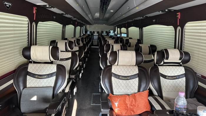 공현진 대구라바라를 출조하는 이기선 피싱클럽의 출조 버스. 편안한 리무진 시트를 갖추고 있다.