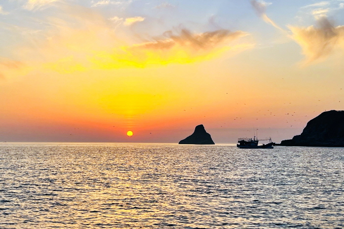 해가 뜨기 전에 팀루비나2호가 출항해 약 1시간을 달려 직도에 도착했다. 직도는 군사훈련 지역이라 평일에는 낚시가 금지된 곳으로 주말에만 낚시가 가능하다. 평일이라도 훈련이 없는 날은 군부대에 미리 허가를 받으면 낚시가 가능하다.