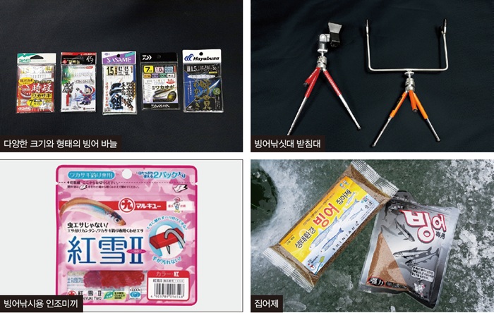 빙어를 더 많이 낚고 싶다면 집어제를 함께 준비해가는 게 좋다. 집어제로는 곤쟁이가 가장 효과가 뛰어나지만 곤쟁이를 구하지 못했을 때는 분말 집어제를 대체품으로 사용한다. 집어제를 사용하면 확실히 조과도 좋아지고 빙어가 오래 머무는 효과가 있다.