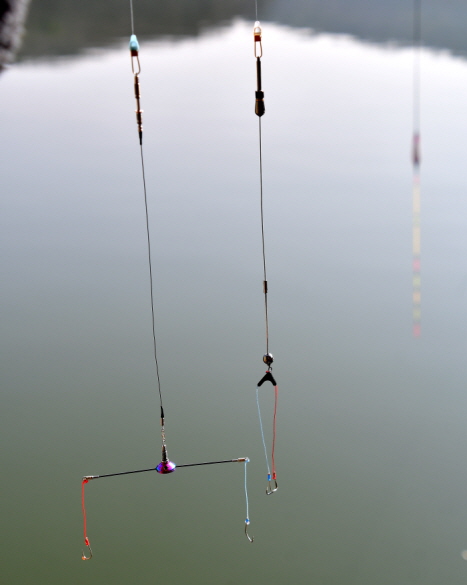 취재일 필자가 사용한 편대 채비와 스네이크 와이어 채비.