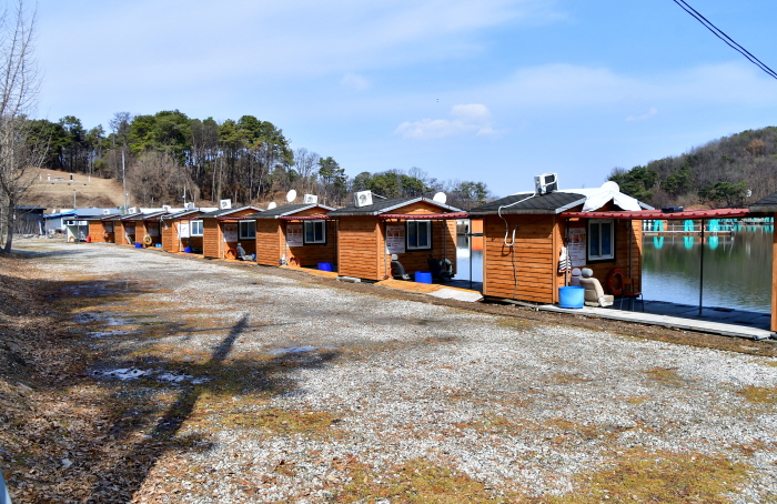 낚시터에 도착해 이번에는 어디에 앉아볼까 살짝 고민하는데 고담낚시터 최영규 대표가 힌트를 주었다. “이른 봄에는 수심 2~2.5미터권이 그나마 나을 겁니다”라면서 관리소 앞 벽돌좌대나 개인 방갈로를 추천해 주었다. 마침 전날 낚시를 마치고 철수한 개인방갈로 조황을 보니 30여 마리는 되어 보였다. 그래서 개인방갈로 1번에 자리를 잡았다.