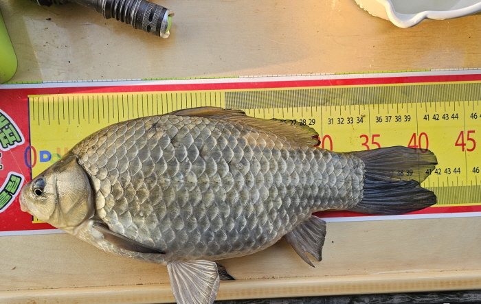 대호에서 올라온 42cm 붕어.