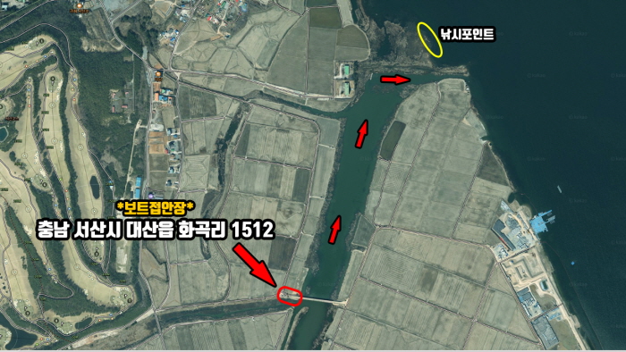 본격 봄붕어 시즌이라 연안에 낚시인들이 많은 만큼 보트 론칭을 대산수로 중간 지점을 이용하고, 포인트까지는 보트로 이동하는 게 좋을 듯 싶다.