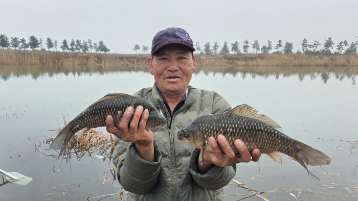 철수 준비를 마치고 김복용 후배의 조과를 확인하니 9수의 붕어가 들어 있었다. 그러나 월척 이상은 없었다. 필자의 살림망에는 최대어 36cm 포함 약 30여 수의 붕어가 들어 있었고 씨알도 대부분 월척 이상이었다. 후배와 조과 차가 너무 커 참으로 이해하기 힘들었다.