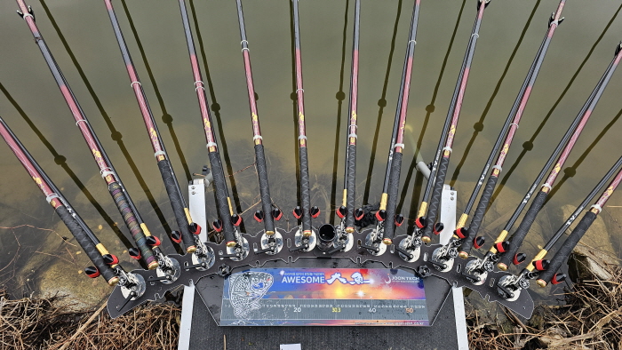 필자의 다대편성. 대륙프로피싱의 왕자낚싯대를 사용하고 있다.