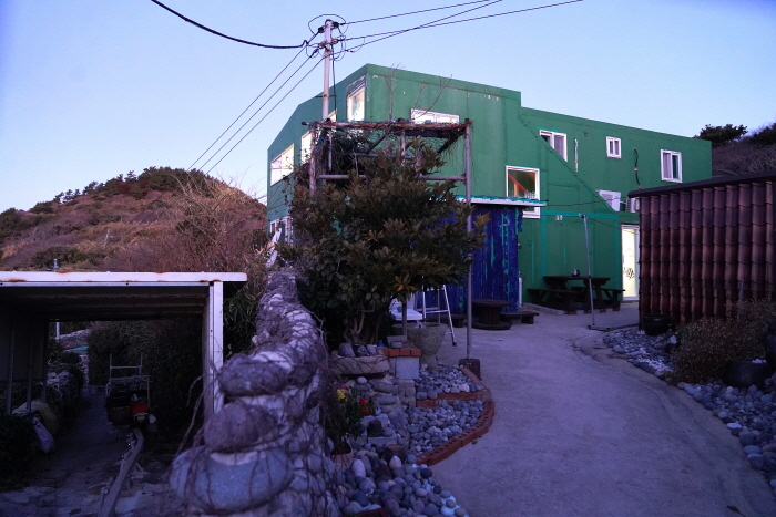 횡간도 유일의 민박집인 횡간민박은 횡간도의 남쪽 산 중턱에 있었다. 보통은 선착장 주변에 마을이 있기 마련이건만, 이곳은 비포장도로를 따라 800m가량 올라가야만 했다. 맨몸으로는 걸어갈 수 있어도 짐을 들고는 절대 갈 수 없는 거리였다.