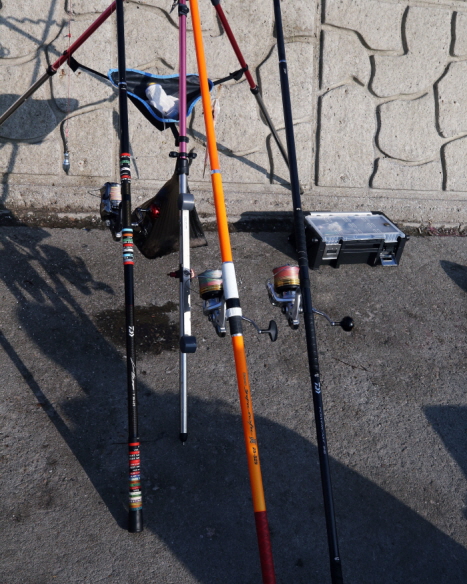 숭어 훌치기용 원투 낚싯대. 정투를 원하면 5m 내외의 짧은 것이 유리하며 원투가 우선이라면 5m보다 긴 것을 사용한다.