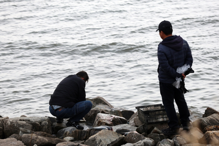 [호황현장] 숭어 훌치기로 인천 영종도가 뜨겁다! 주말이면 인천대교 석축에 100여 명 운집