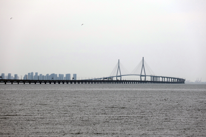 영종도와 인천 송도를 연결하는 인천대교. 멀리 보이는 곳이 송도다.
