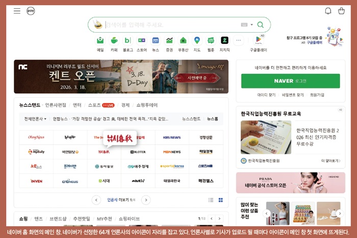 그렇다면 낚시춘추 기사는 어떤 경로로 네이버에 업로드 되는 것일까요? 이는 네이버가 운영 중인 ‘뉴스스탠드’가 있기 때문입니다. 뉴스스탠드란 네이버가 엄선한 언론사들이 기사를 네이버에 공급하는 시스템을 말합니다. PC에서 네이버에 들어가면 메인창에 수많은 언론사의 아이콘이 떠있는 것을 볼 수 있습니다.