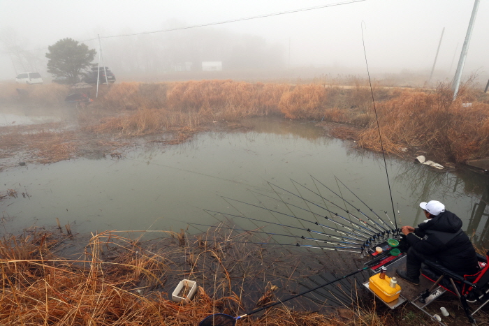 강화 교동도 읍내리수로는 2010년 전후에 월척 붕어가 무더기로 낚인 것으로 유명하다. 봄에는 부들밭, 가을에는 갈대밭, 겨울에는 얼음낚시까지 잘 되는 수도원 에이스 낚시터로 꼽혔다. 그런데 너무 많은 낚시인이 다녀간 탓일까?