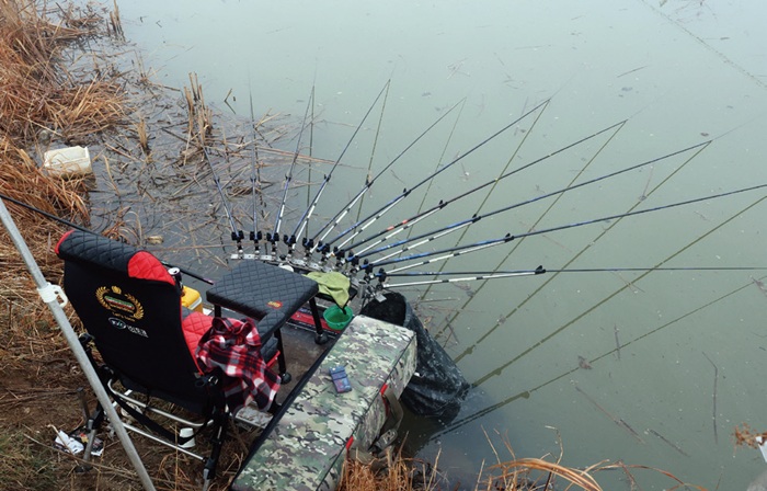 조훈희 씨의 낚시자리. 3칸 내외 짧은 대로 얕은 연안을 노렸다.