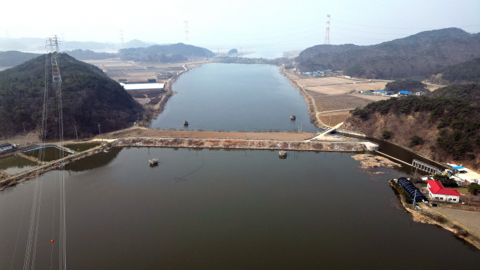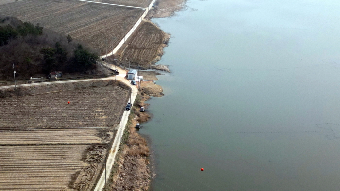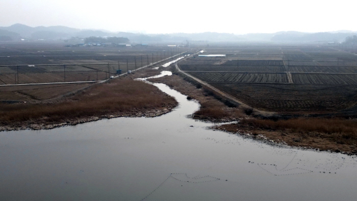 드론으로 촬영한 당진포리 가지수로.