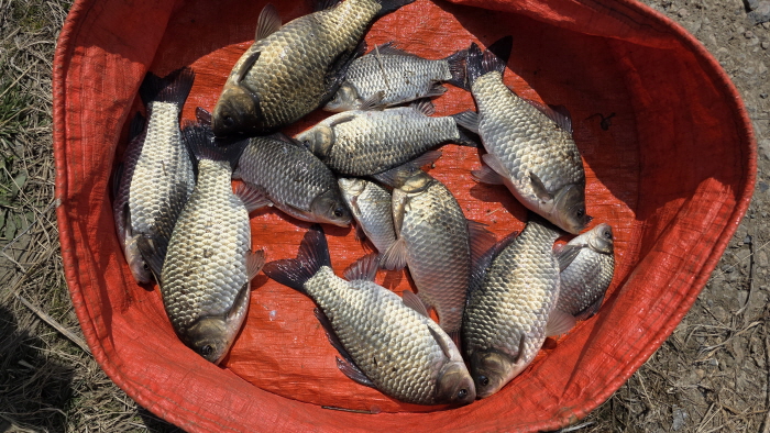 안개가 걷히고 텐트가 어느 정도 말라 가기에 철수를 결정하고 잡은 붕어를 확인해 보았다. 필자의 살림망에 준월척 붕어 7수, 홍순진 씨의 살림망에 최대어 38cm와 34cm 등 씨알 좋은 붕어 10수가 들어 있었다. 2박 일정의 낚시에 만족스럽지는 못한 조과였지만 얕은 수심 속에서의 조과치고는 그리 서운하지는 않았다.