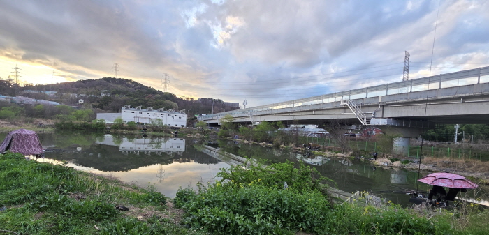 필자는 최상류 진입로 앞쪽에 자리를 잡았다. 나머지 회원들도 각자 마음에 드는 포인트를 선정해 대편성을 시작했다. 대편성을 모두 끝낸 후 부근 식당에 가서 저녁식사를 하였다. 밤 7시 쯤 각자 낚시 자리로 돌아가 케미를 꼽고 밤낚시를 시작하였다.