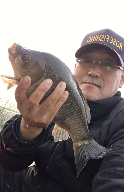 필자가 낚은 44cm 대물붕어. 산란을 일찍 끝내고 먹이활동 하는 시기인 것 같았다.