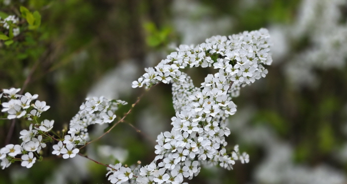 낚시터 주변 조팝나무에 꽃이 만개했다.
