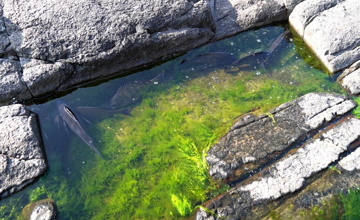 물칸에 살려놓은 감성돔들.