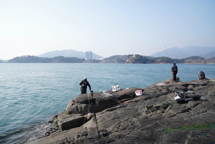 물양장 중바위 방면에서 감성돔을 노리는 낚시인들.