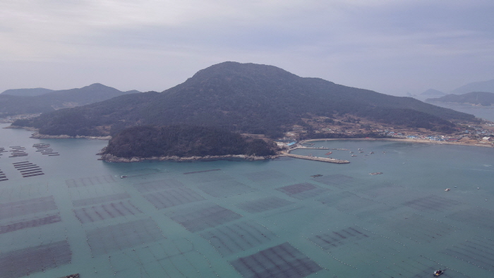 드론으로 촬영한 소안도 주변 해역. 거대한 김 양식장이 자리잡고 있다.