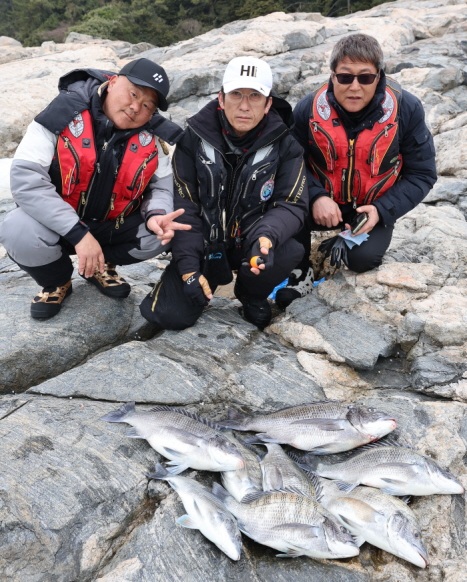 취재팀이 내린 얕은 여밭에서도 감성돔이 호황을 보였기에 다른 자리에 내린 회원들이 조과에 기대감이 들었다. 그런데 오후 3시에 철수하며 조과를 확인하니 밖고래여에 내린 박기성 회원만 42cm 감성돔을 낚았고 다른 회원들은 입질 한 번 받지 못했다고 했다. 하선한 자리마다 바람이 강하게 불었고 물색도 좋지 않았다고 했다. 단, 취재팀이 내린 몽돌밭자리 옆에 내린 현지 낚시인들은 3명이서 감성돔 9마리를 낚았는데, 그곳 역시 수심 5m 내외에 김이 무성하게 자란 자리라고 했다.