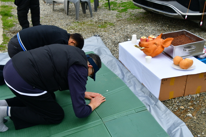 군계일학 성제현 대표와 이영호 회장이 고사를 지내고 있다.